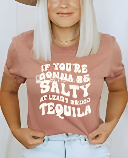 Introducing our latest addition to our Women's Retail Boutique, the Don't be Salty tee! Perfect to wear with your favourite pair of jeans or leggings, this t-shirt is made from premium quality cotton for ultimate comfort. Featuring a quirky yet fun slogan that reads 'Don't be Salty at least bring Tequila', this tee will add a touch of humour to your wardrobe. Available in a range of sizes, this t-shirt is a must-have for any tequila-loving fashionista. So why wait? Get your hands on this tee and make a bold statement wherever you go